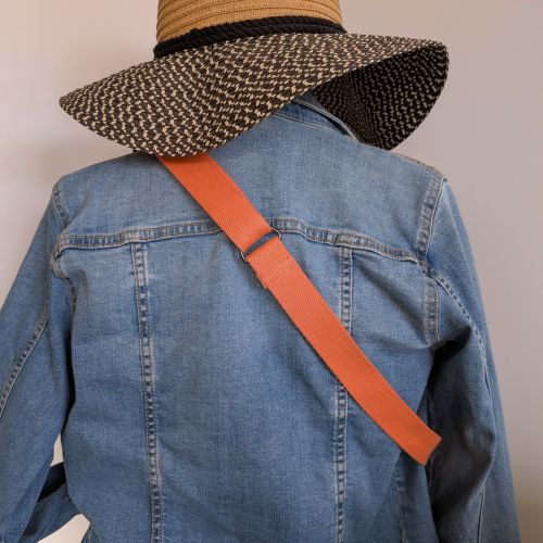 – la sangle corail est réglable de 74 cm à 94 cm avec une boucle de réglage noire.