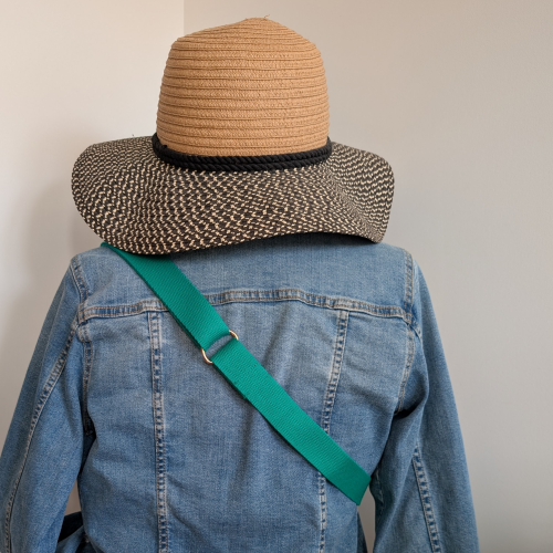 – la sangle verte est réglable de 75 cm à 102 cm avec une boucle de réglage dorée.