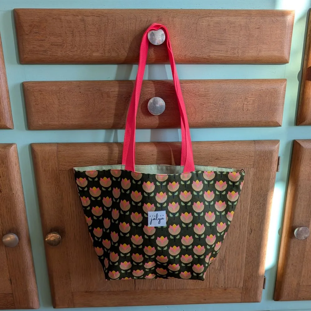 – extérieur: coton épais aux motifs de tulipes corail et jaune sur fond kaki