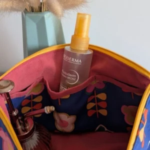 A l’interieur, vous trouverez 3 poches sur la même face : environ 12,5 X 12,5 cm chacune